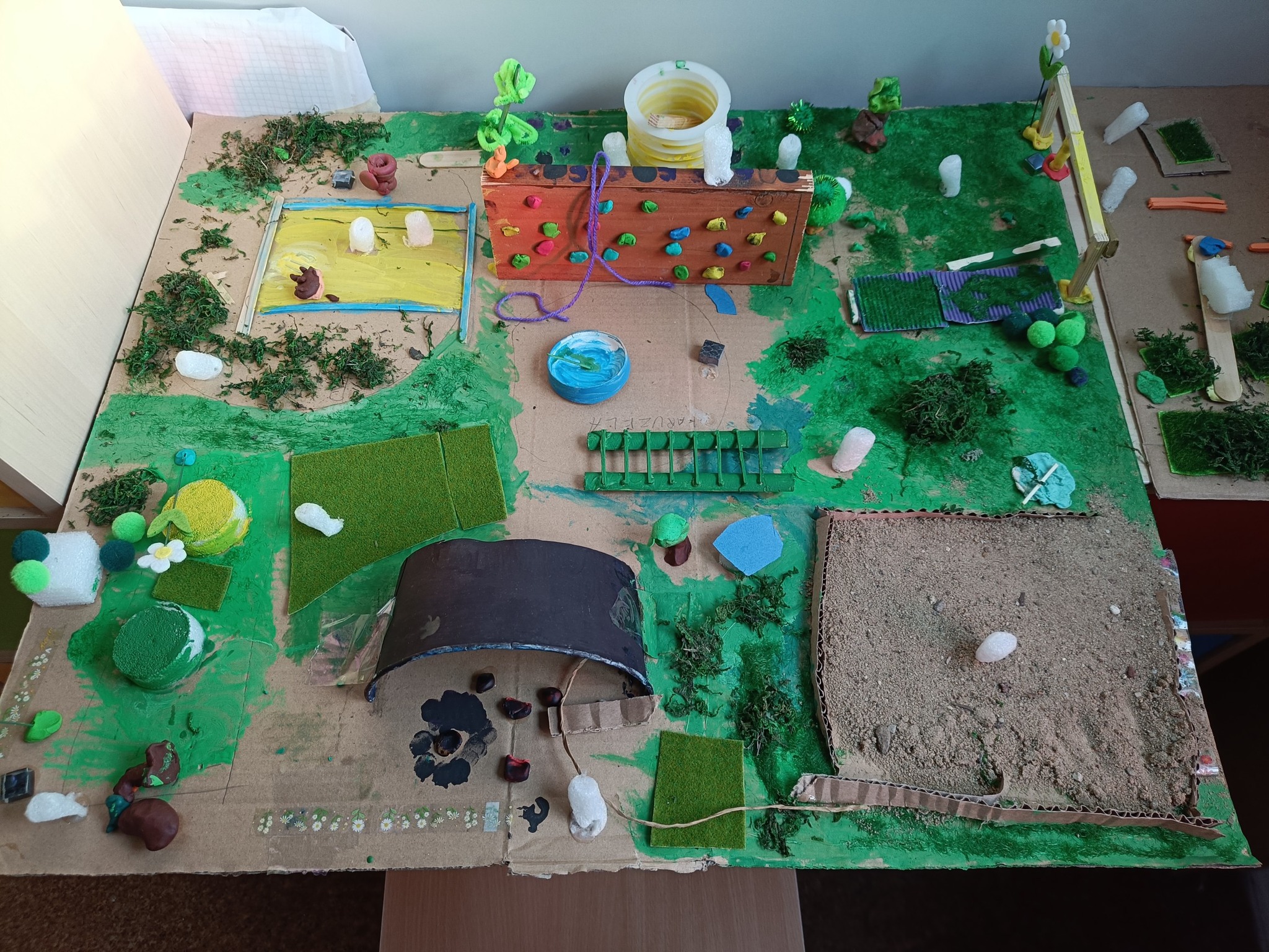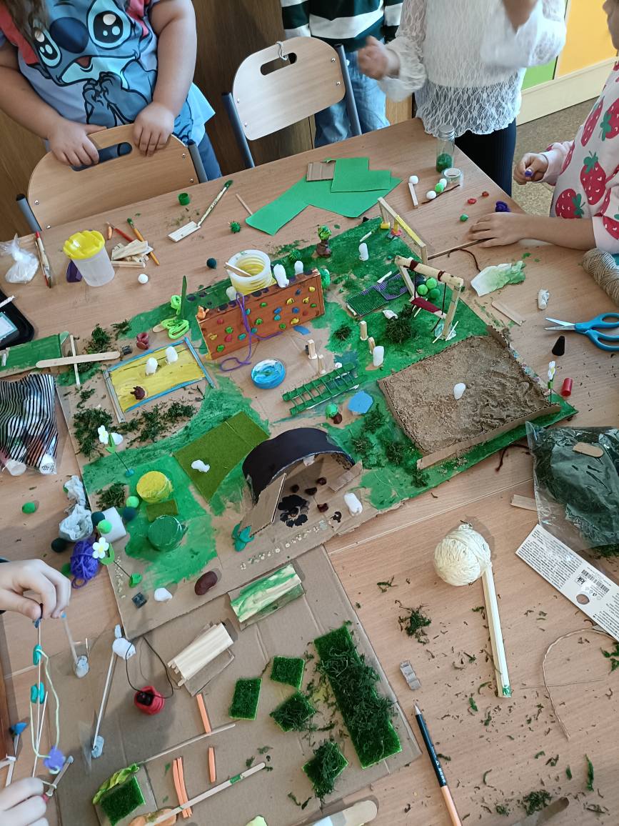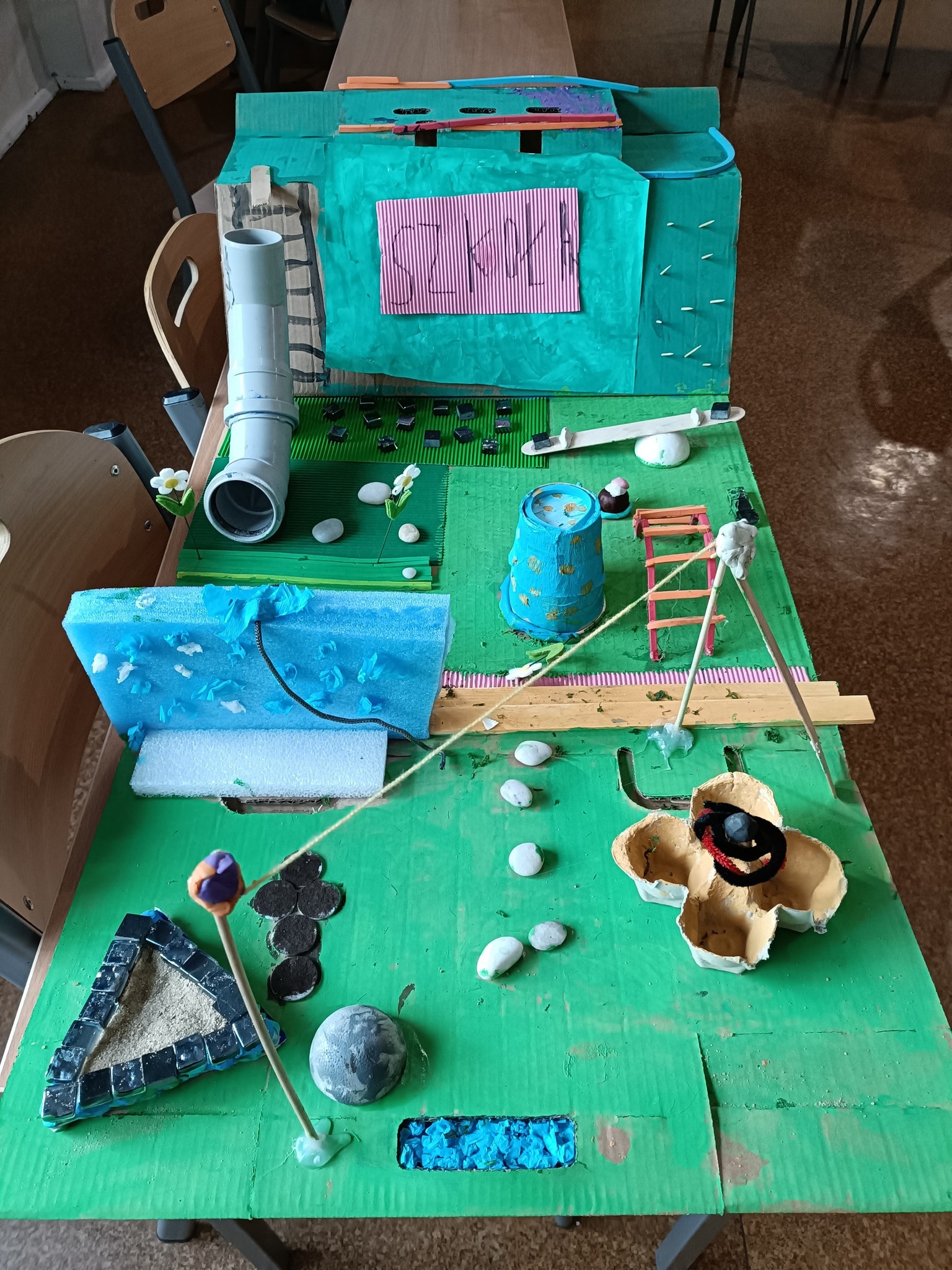 Uczniowie klasy 2a w ramach projektu "NATALKA I ANTEK W ŚWIECIE WIELKIEJ MATEMATYKI" na zajęciach technicznych wykonali makiety placów zabaw.